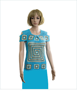 This granny square top pattern is easy for a beginner. The pattern allows to crochet long sleeve dress in S, M, L and XL sizes. The lovely turquoise color is trendy one this year.